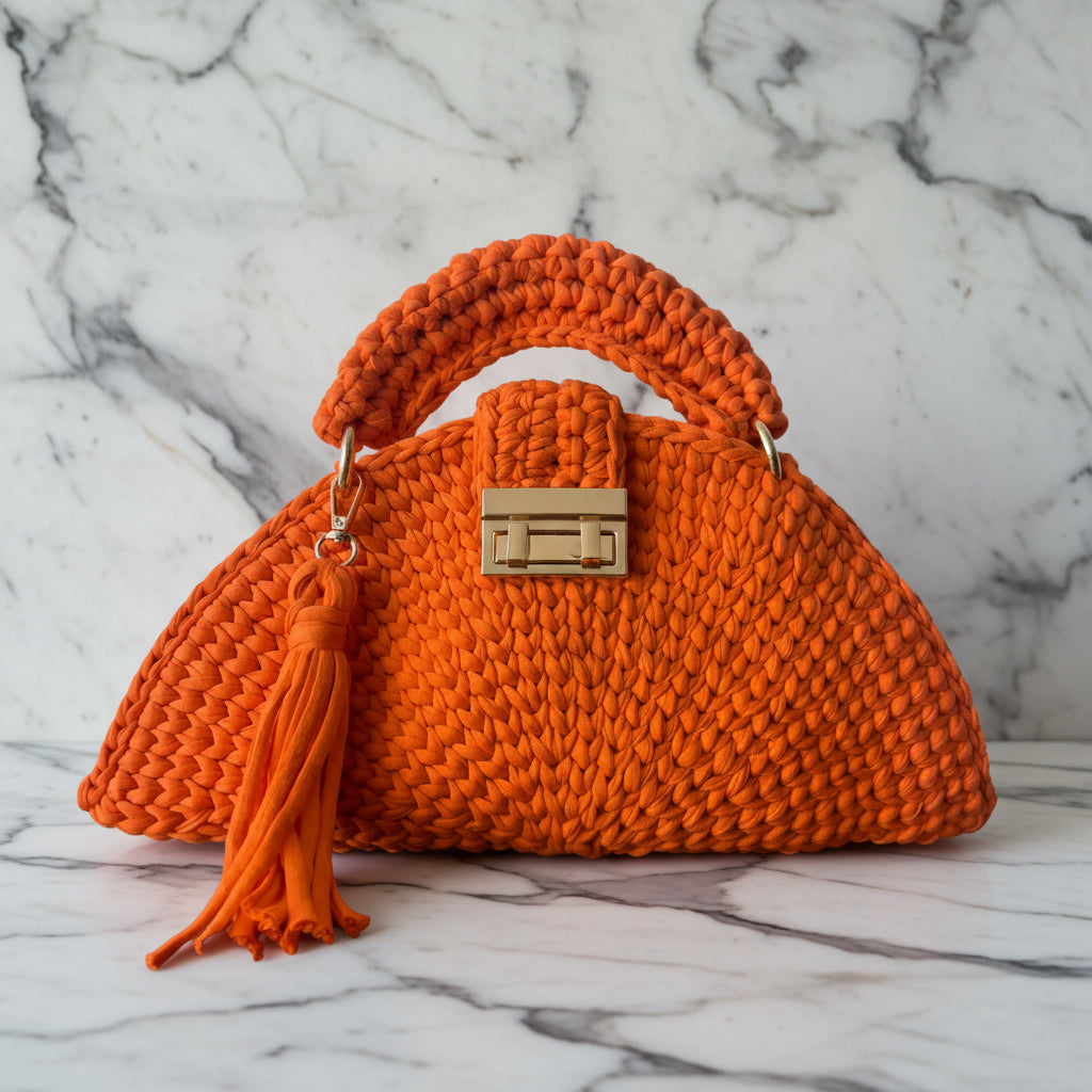 Handmade crocheted bag made of premium T-shirt combed yarn with cottons