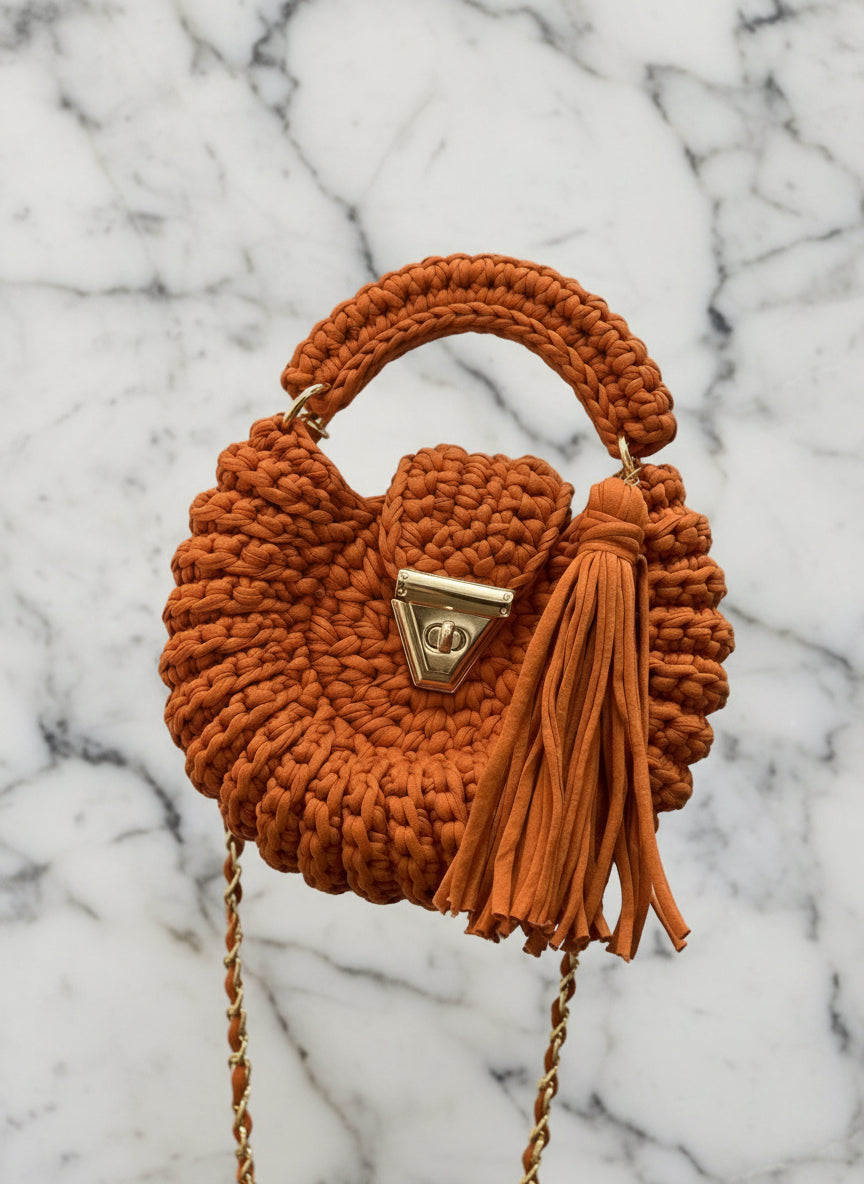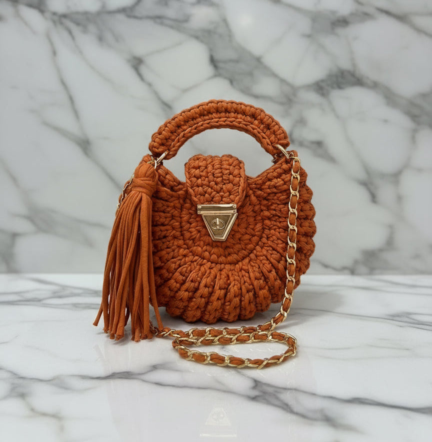 Handmade crocheted bag made of premium T-shirt combed yarn with cottons.